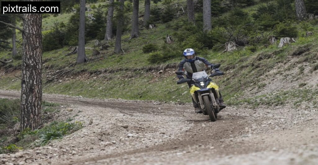 Suzuki’s Gravel ABS mode worked well in the looser stuff, letting the rear slide just enough for directional control while keeping the front stable.
