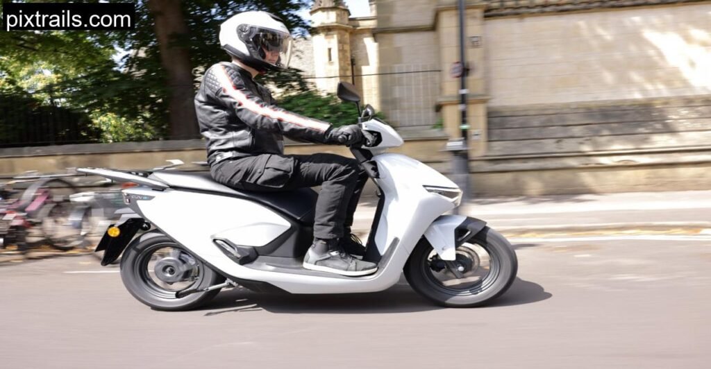 Braking, with Honda’s CBS setup, was predictable and well-balanced in dry conditions. However, on a damp section outside Bra, I found myself wishing for ABS, especially on the small 12-inch wheels. CBS works well for everyday commuting, but on slippery cobbles, ABS would be a reassuring safety net.