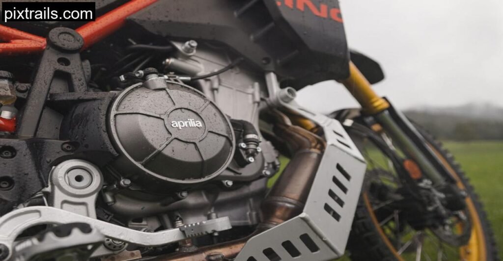It’s happiest when pushed, climbing, sliding, and charging over uneven ground. But when the ride slows, the bike doesn’t punish you. The seat is comfortable enough for a full day in the saddle, and the fuel tank gives a practical range for touring. Pair that with cruise control, luggage options, and Aprilia’s accessory catalog, and you’ve got a bike that can carry you across continents.